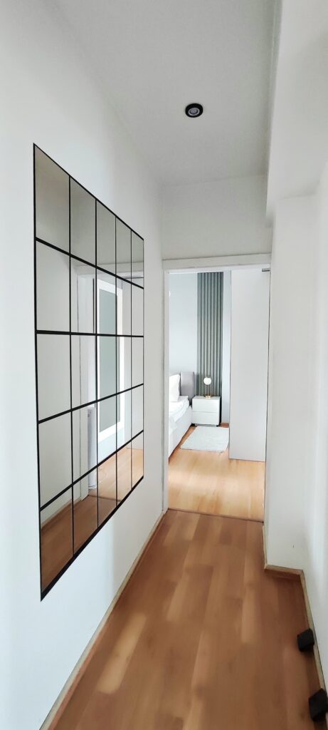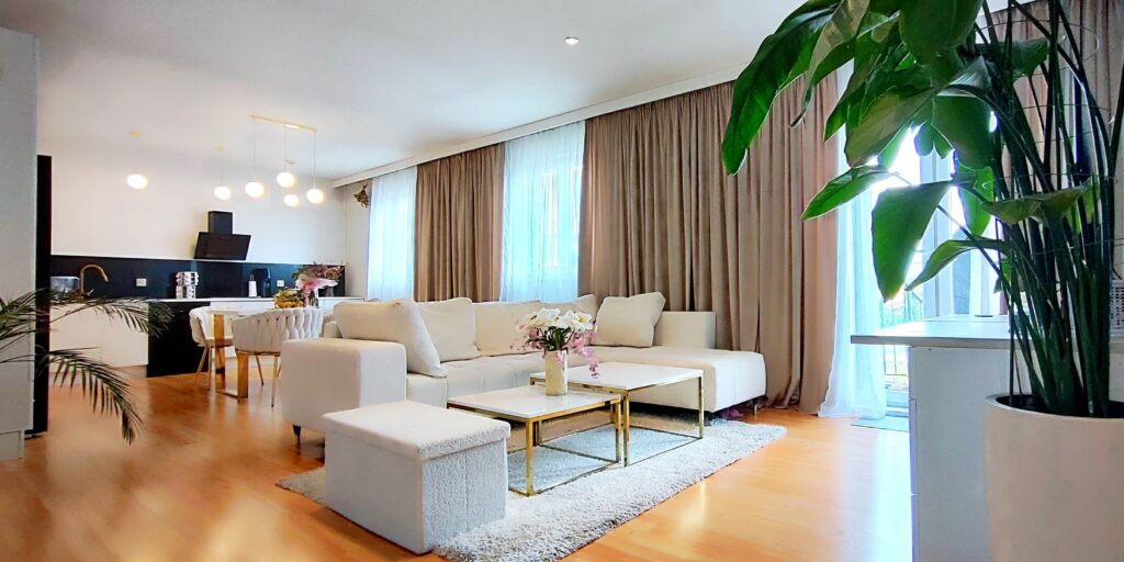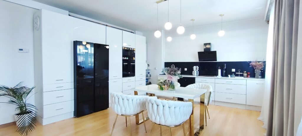 Wysoki standard wykończenia – meble i zabudowy wykonane na wymiar, wysokiej klasy materiały.
