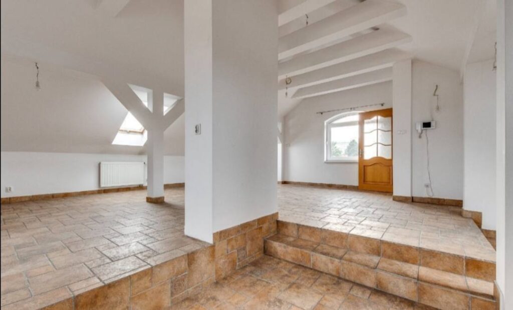 Ostatnia kondygnacja znajduje się poddaszu i składa się z open space (50m2), łazienki z prysznicem , pokój/garderoba oraz miejsce na kuchnie z jadalnią (przygotowane instalacje).
