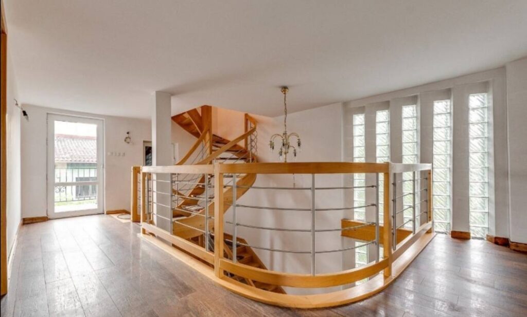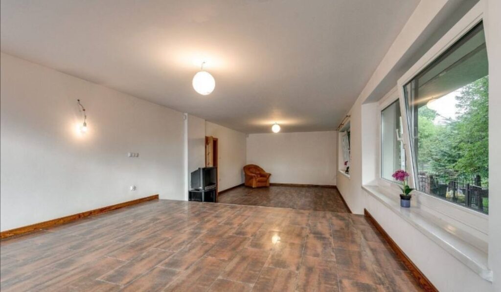 Obecnie budynek zaadaptowany jest jako mieszkalny Po wejściu do domu wchodzimy do dużego holu (24m2). Po prawej stronie znajduje się salon z wyjściem na taras (47m2), w której należy zwrócić uwagę na przeszkloną ścianę gwarantującą doskonałe doświetlenie pomieszczenia. Z holu wchodzimy do widnej kuchni ze spiżarką oraz toaleta.