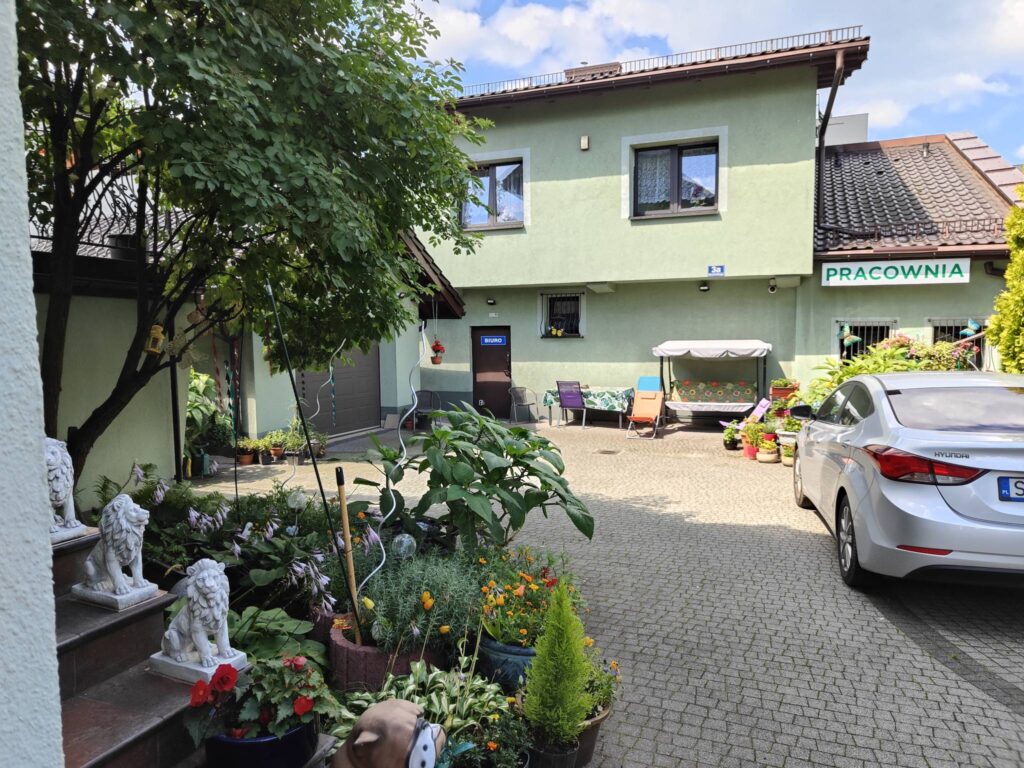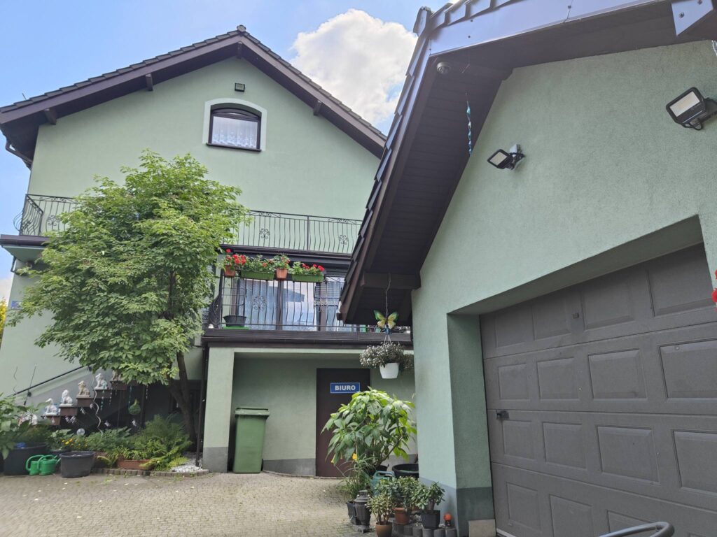 Działka (680m2) została wykorzystana pod zabudowę domu jednorodzinnego wolnostojącego o powierzchni 210 mkw oraz budynku pod działalność gospodarczą o pow. 126 mkw, oraz na garaż wolnostojący o pow. 22 mkw. Dom może zostać wykorzystany jako lokal mieszkalny dla dwóch rodzin a nawet trzech, biuro, gabinety lekarskie czy też hotel pracowniczy.
