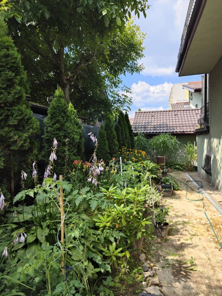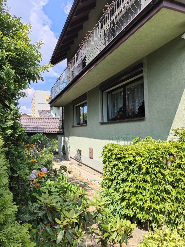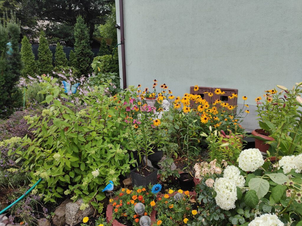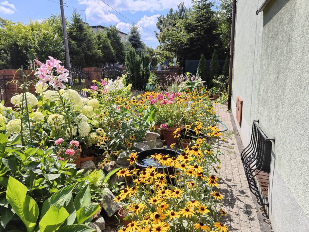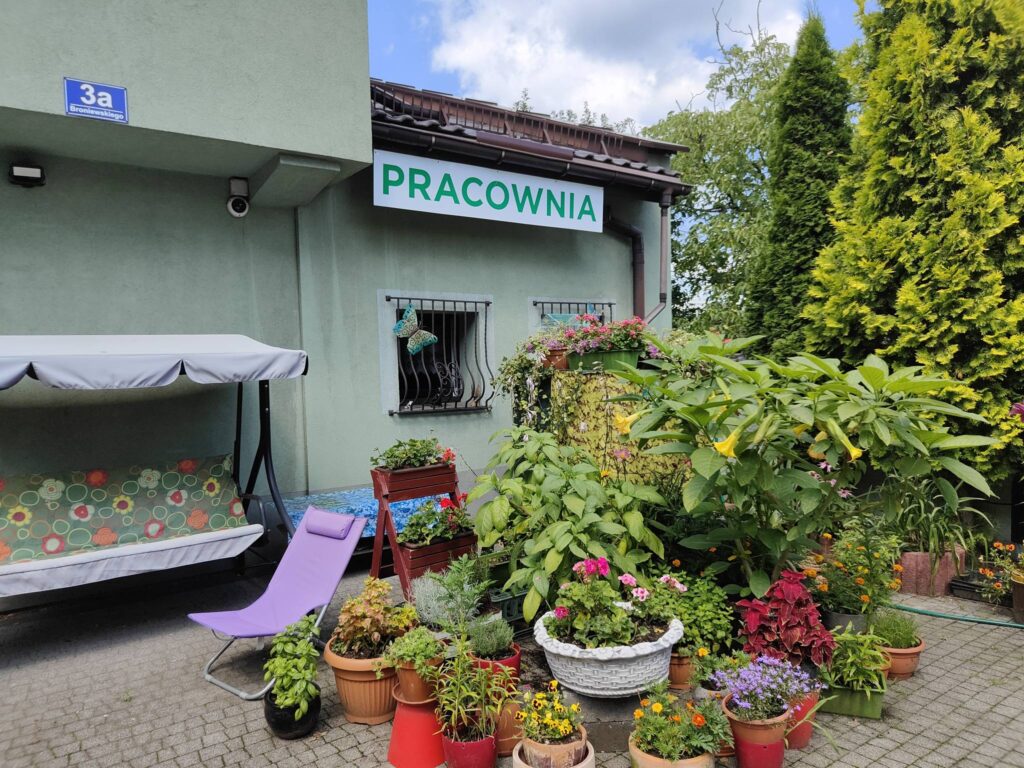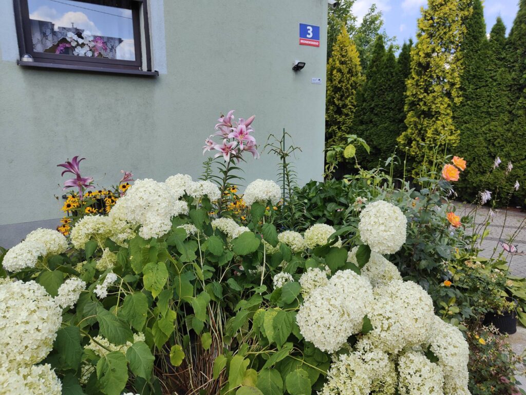 Obok budynku znajduje się ogródek z miejscem na strefę wypoczynkową oraz przestronny taras. Wzdłuż ogrodzenia posadzony jest rząd tui, które zapewniają separację od sąsiadów i tworzą prywatną przestrzeń. Na terenie posesji znajduje się kilka naziemnych miejsc postojowych.
